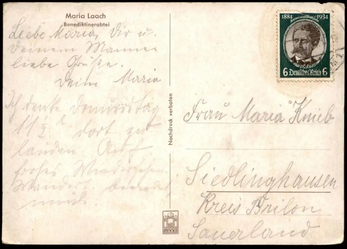Gelaufen: xx.xx.1934 nach Siedlinghausen mit Briefmarke Dr. Gustav Nachtigal KolonialgedenkjahrErhaltung (s. Scan): gut - mittel, Ecken (besonders oben links) etwas bestoßen / 918738