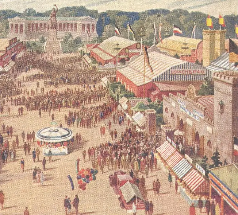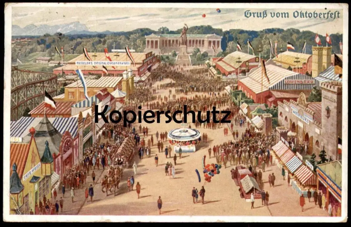 ALTE KÜNSTLER POSTKARTE MÜNCHEN GRUSS VOM OKTOBERFEST 1940 Flagge flag Achterbahn roller coaster Munich postcard cpa AK