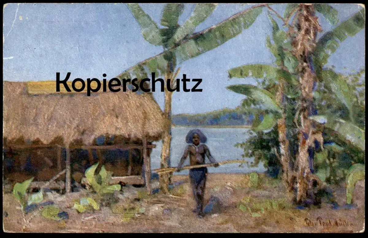 ALTE KÜNSTLER POSTKARTE PAPUA-NEUGUINEA SIGN. PETER PAUL MÜLLER Indigene Native cpa postcard AK colony colonie Kolonie