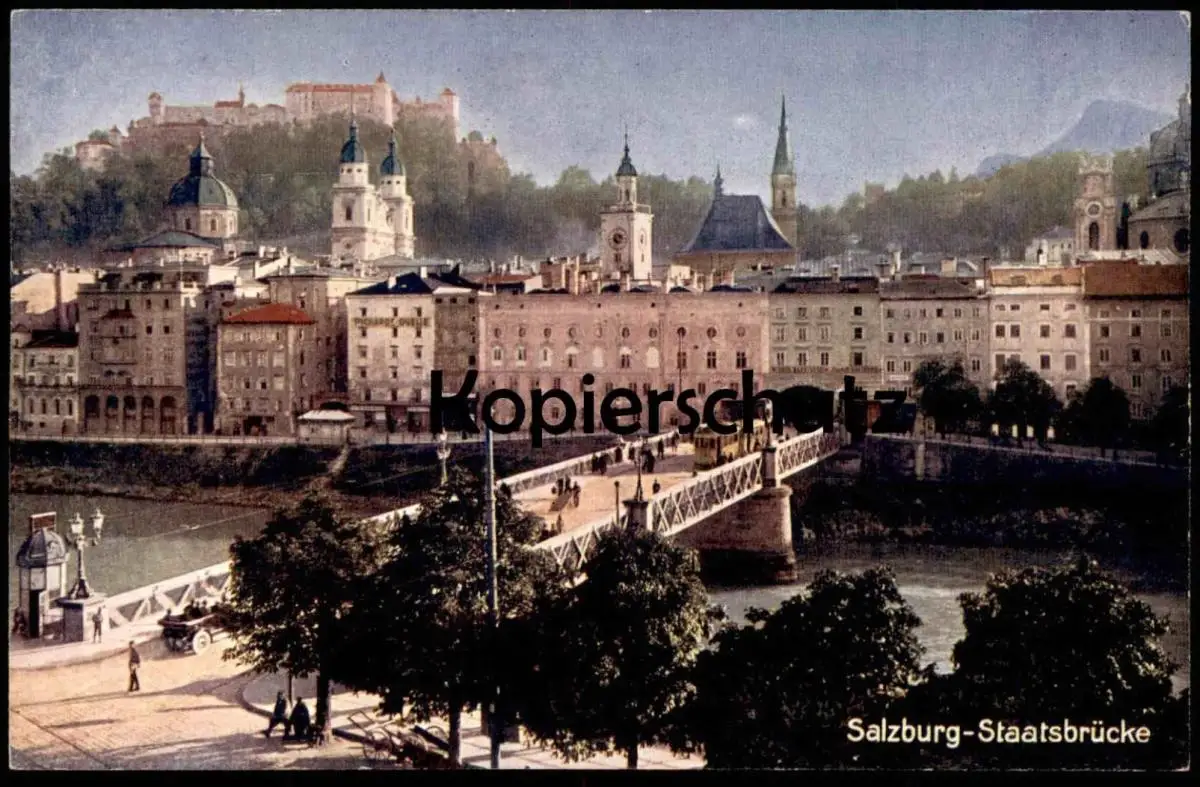 ALTE POSTKARTE SALZBURG STAATSBRÜCKE STRASSENBAHN RICHARDS QUELLE