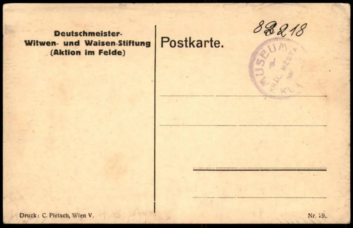 Verlag: Deutschmeister-Witwen- und Waisen-Stiftung Aktion im Felde; Druck: C. Pietsch, Wien V.
