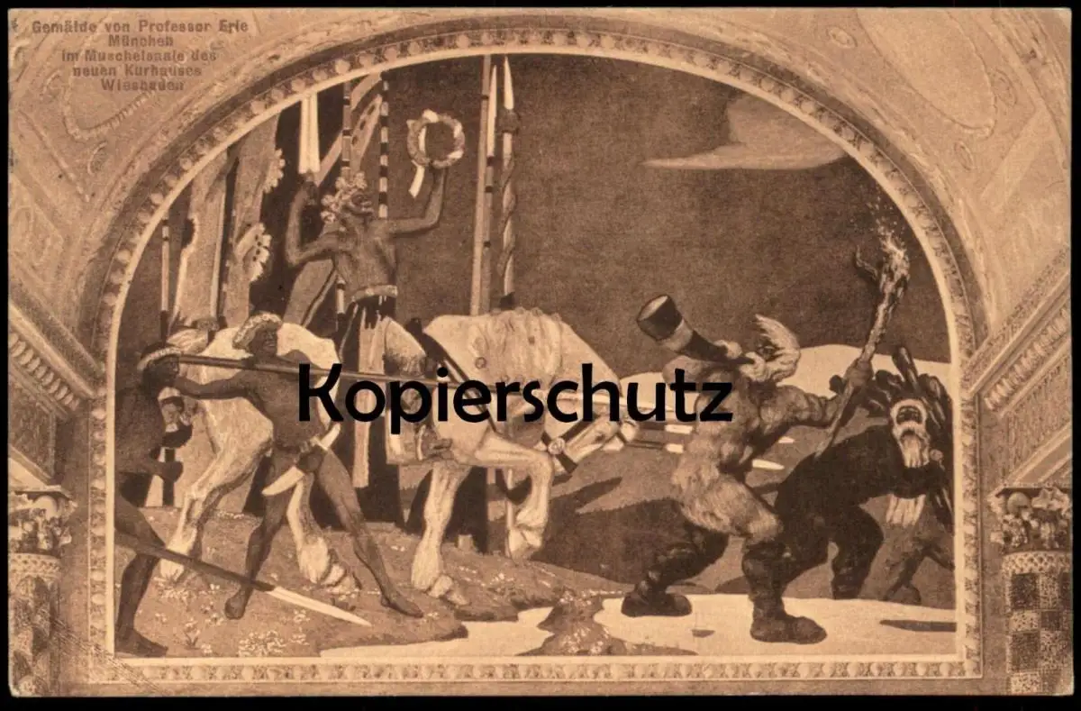 ALTE KÜNSTLER POSTKARTE WIESBADEN GEMÄLDE IM MUSCHELSAALE VON PROFESSOR ERLE MÜNCHEN Ansichtskarte postcard cpa AK