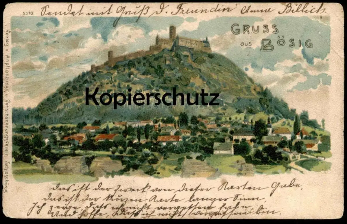 ALTE LITHO POSTKARTE GRUSS AUS BÖSIG BEZDEZ SUDETEN Tschechien Tschechische Repulik Ansichtskarte postcard cpa AK