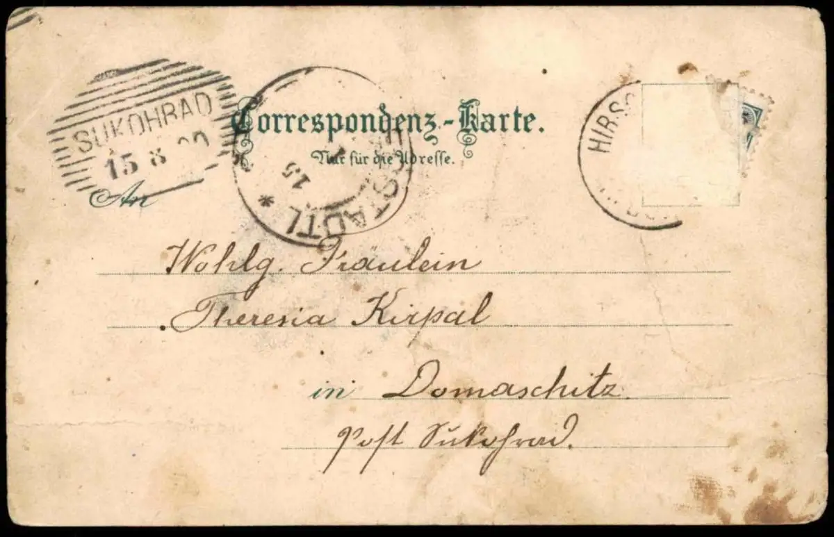 Gelaufen: 15.08.1900 nach Domaschitz, Briefmarke (sauber) entferntErhaltung (s. Scan): mittel - schlechter, Ecke rechts oben und mittig stärker bestoßen / 915891