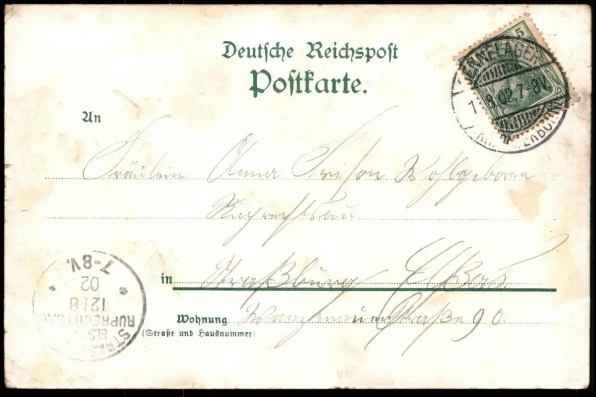 Gelaufen: 01.08.1902 mit Stempel Sennelager nach StrassburgErhaltung (s. Scan): gut - mittel, rechter Rand leicht bestoßen / 915790