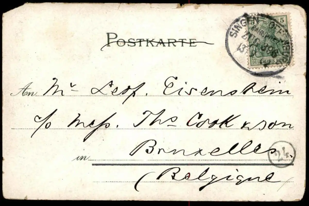 Verlag: G. Moglia, DonaueschingenGelaufen: 13.09.1902 mit Bahnpoststempel Zug 396 Singen - Offenburg nach BrüsselErhaltung (s. Scan): schlechter, stärker bestoßen, kleiner Einriss linksseitig, Ecke oben rechts beschädigt / 916072