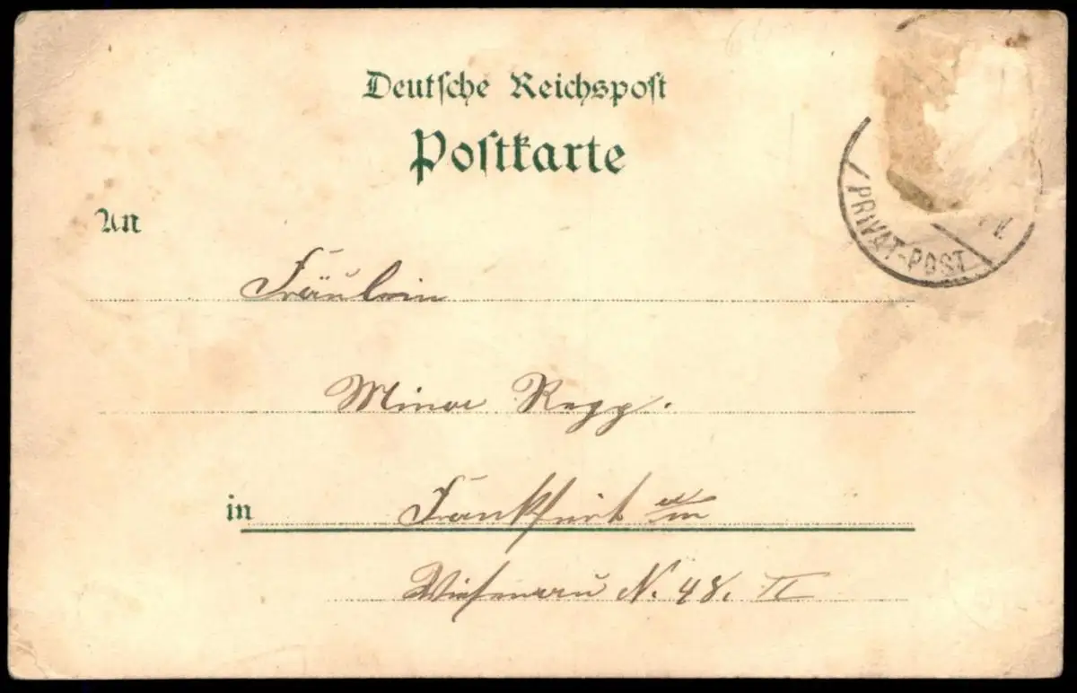 Gelaufen: xx.xx.18xx oder 19xx mit Stempel Privat-Post nach Frankfurt, Briefmarke mit leichten Spuren entfernt