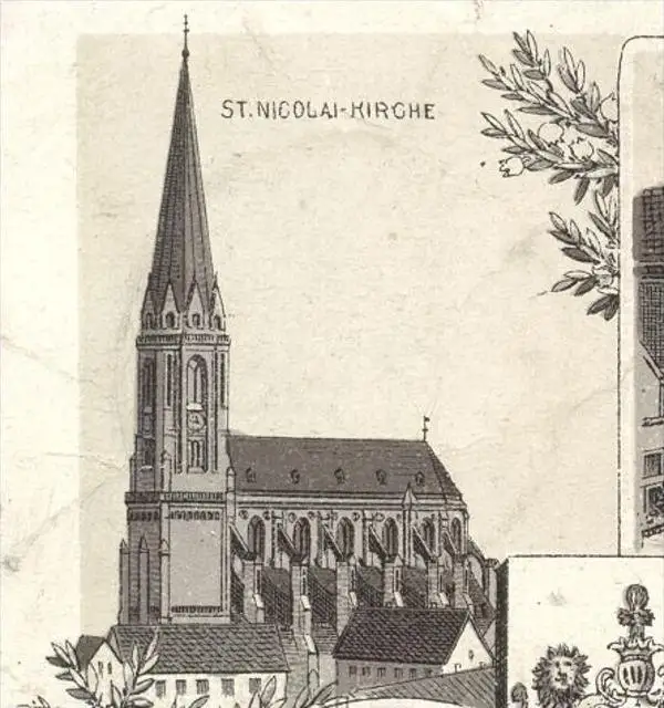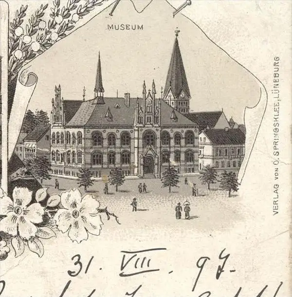 ALTE LITHO POSTKARTE AUS LÜNEBURG DER HAIDE ALTER ORT HERZLICHEN GRUSS UND AUCH EIN FREUNDLICHES WORT, AM SANDE MUSEUM ST. NICOLAI KIRCHE