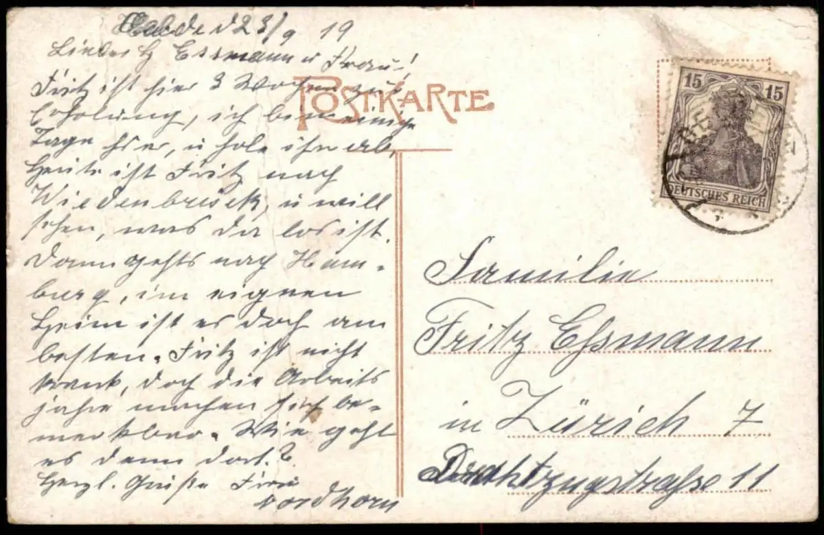 Gelaufen: 23.09.1919 mit Oelde nach Zürich