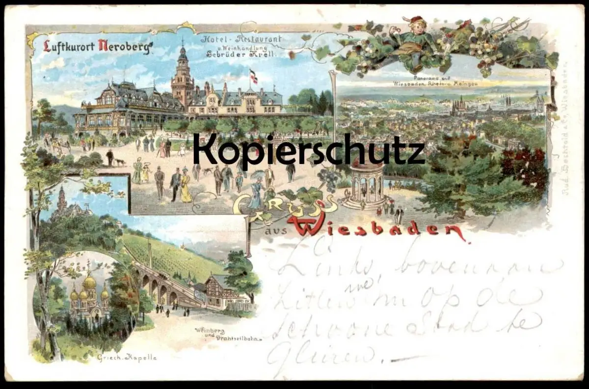ALTE LITHO POSTKARTE GRUSS AUS WIESBADEN LUFTKURORT NEROBERG WEINHANDLUNG GEBRÜDER KRELL AK Ansichtskarte cpa postcard