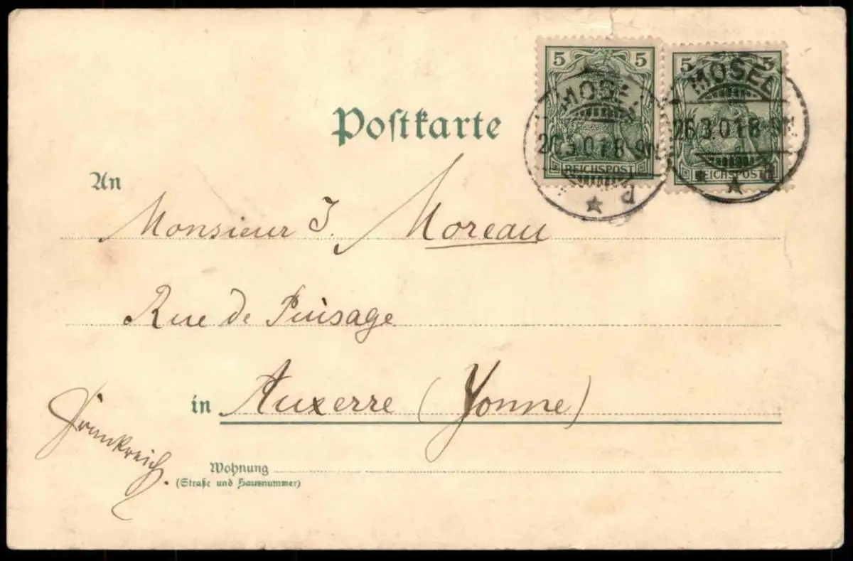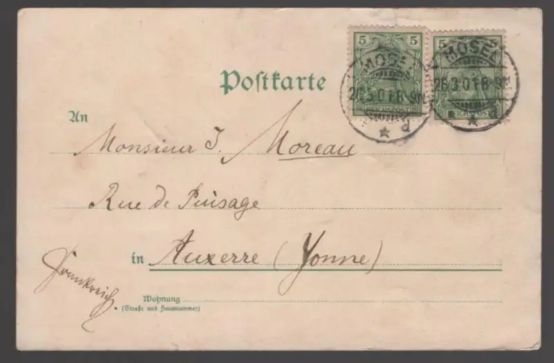 Gelaufen: 26.03.1901 mit Stempel Mosel nach AuxerreErhaltung (s. Scan): mittel, oben links bestoßen & kleiner Einriss / 915739