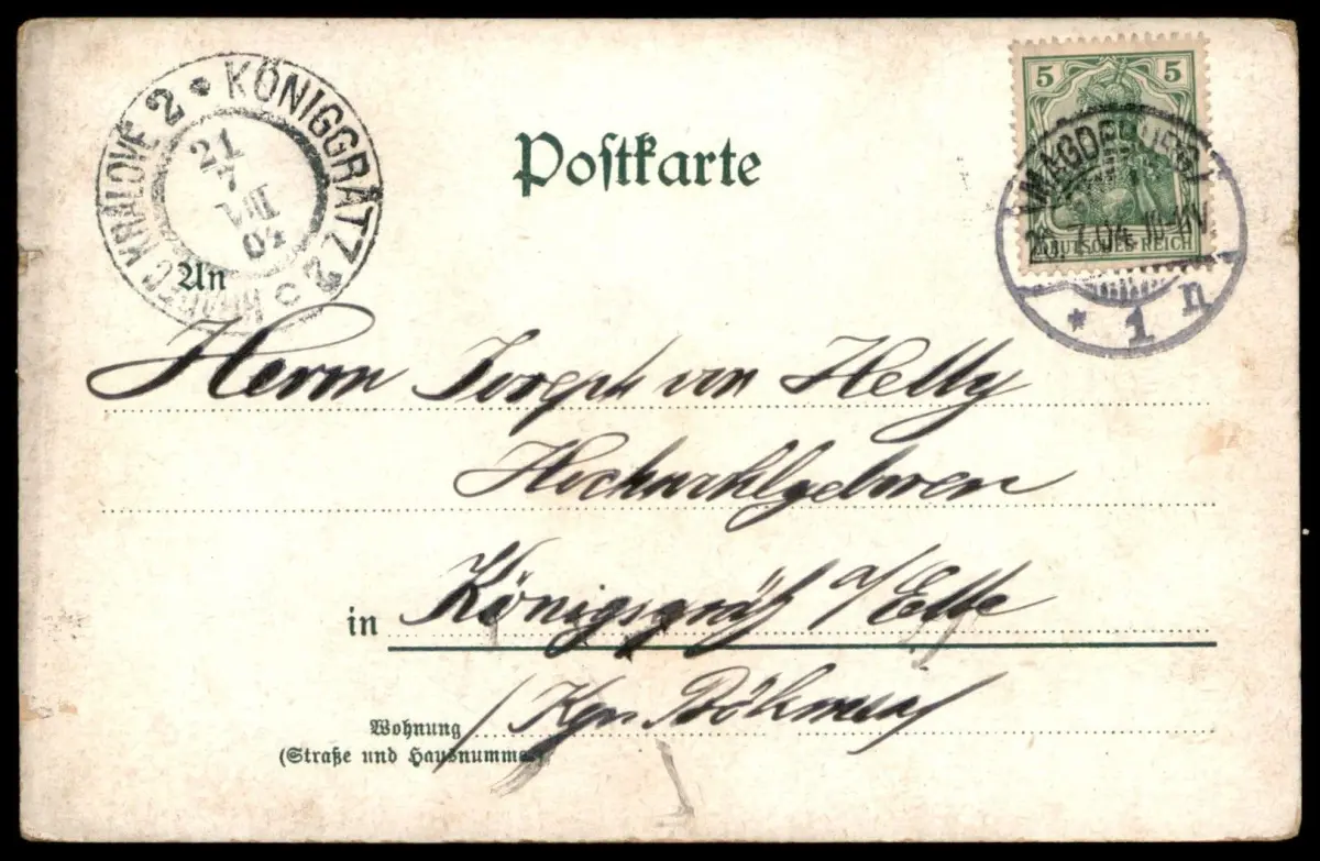 Gelaufen: 20.07.1904 mit Stempel Magdeburg nach Königgrätz