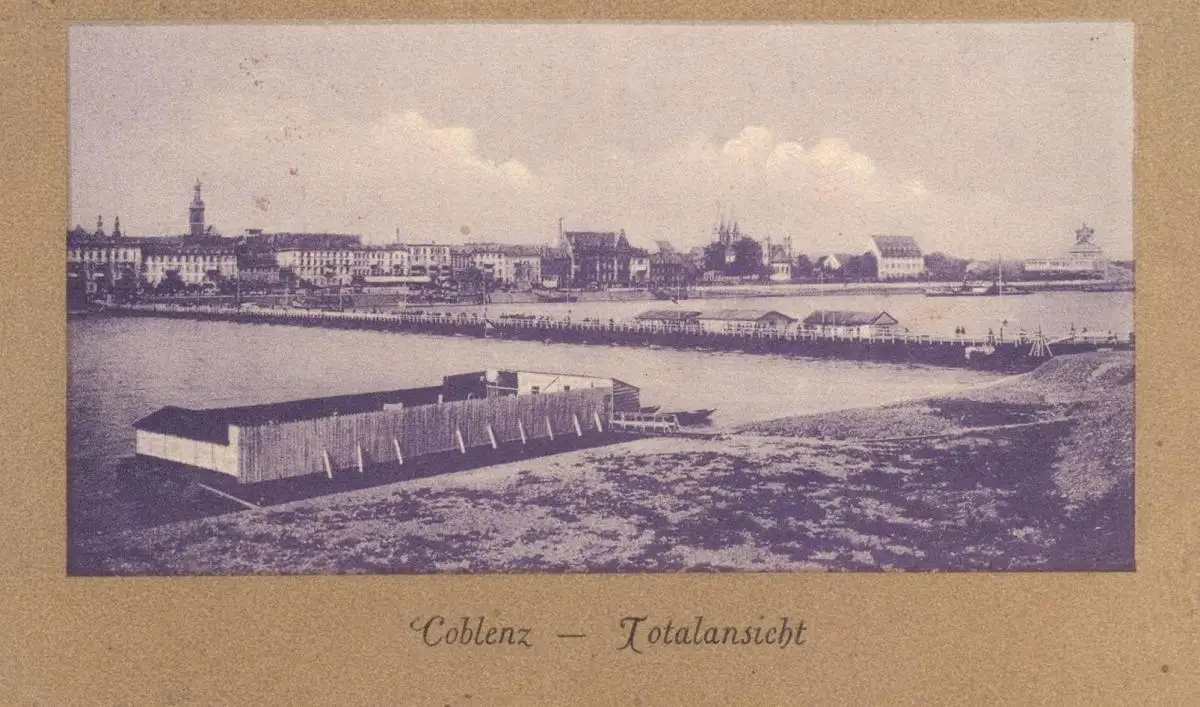ALTE PASSEPARTOUT POSTKARTE COBLENZ TOTALANSICHT Badeanstalt Koblenz Gesamtsansicht Total Ansichtskarte postcard AK cpa