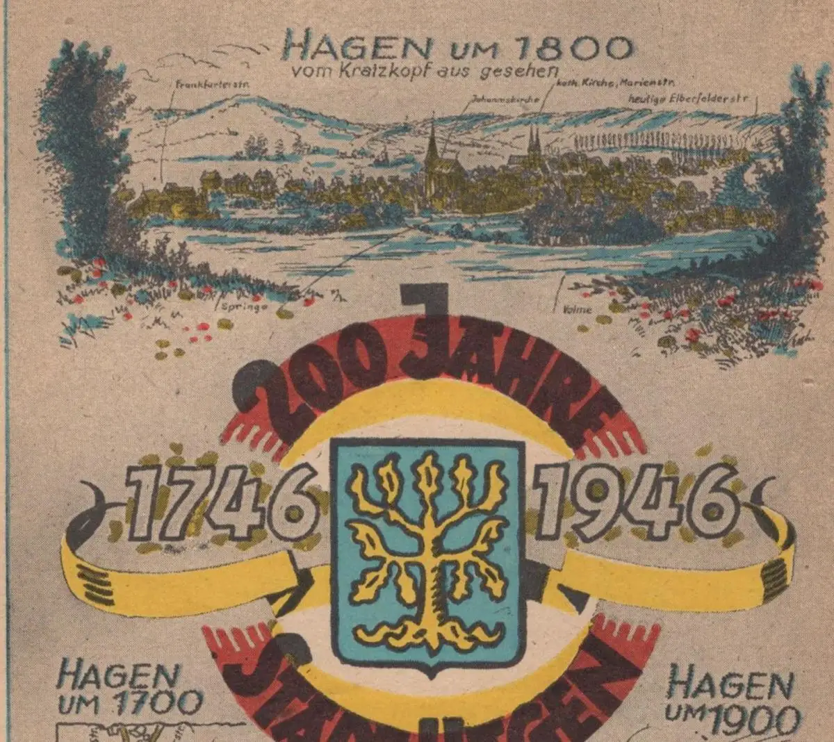 ALTE POSTKARTE 200 JAHRE STADT HAGEN 1946 VOM KRATZHOF AUS GESEHEN UM 1800 UM 1700 UM 1900 cpa AK Ansichtskarte postcard