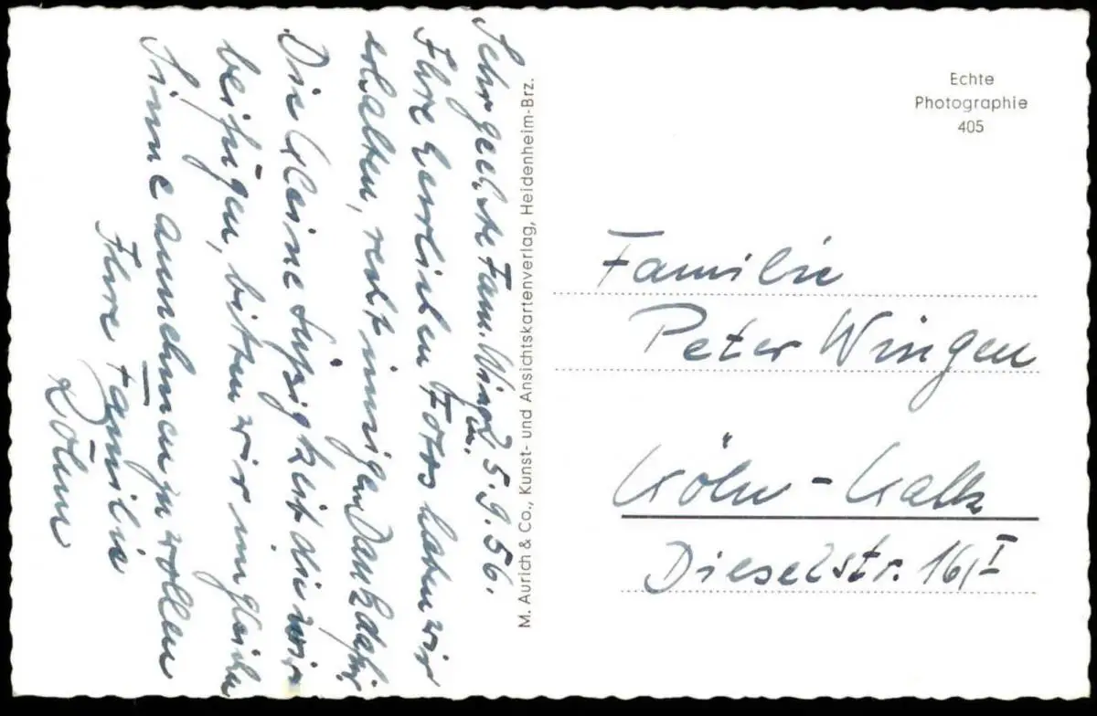 Gelaufen: nein, beschrieben 05.09.1956 nach Köln Kalk