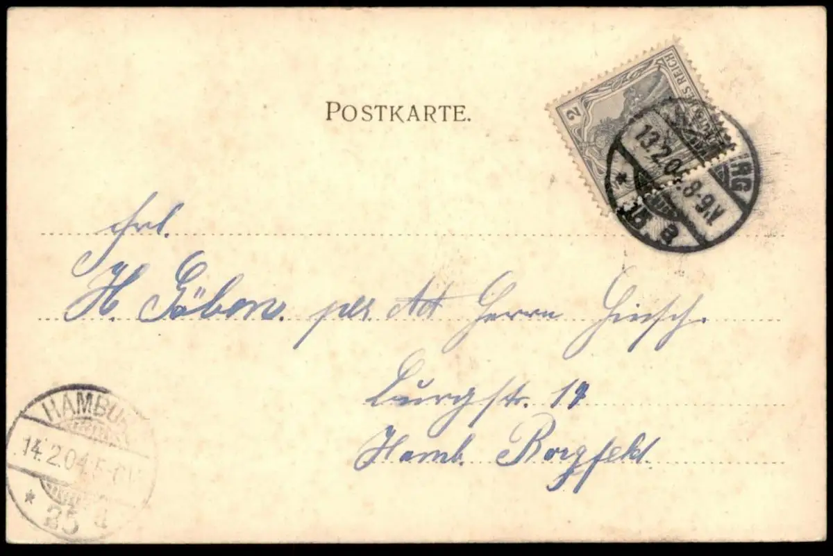 Gelaufen: 13.02.1904 mit Stempel Hamburg nach Hamburg Borgfeld (Borgfelde)