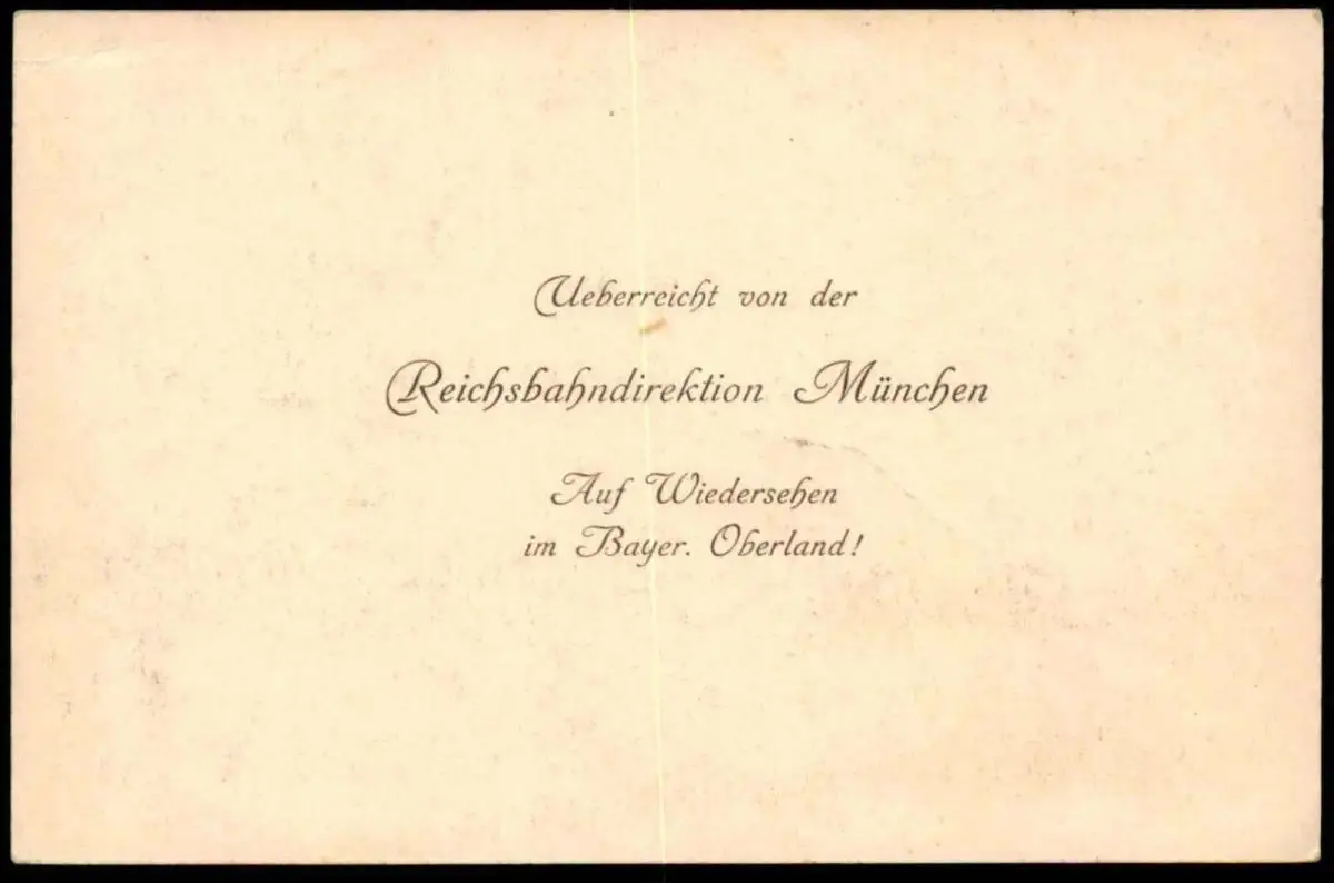 Gelaufen: nein - „Überreicht von der Reichsbahndirektion München Auf Wiedersehen im Bayer. Oberland!“