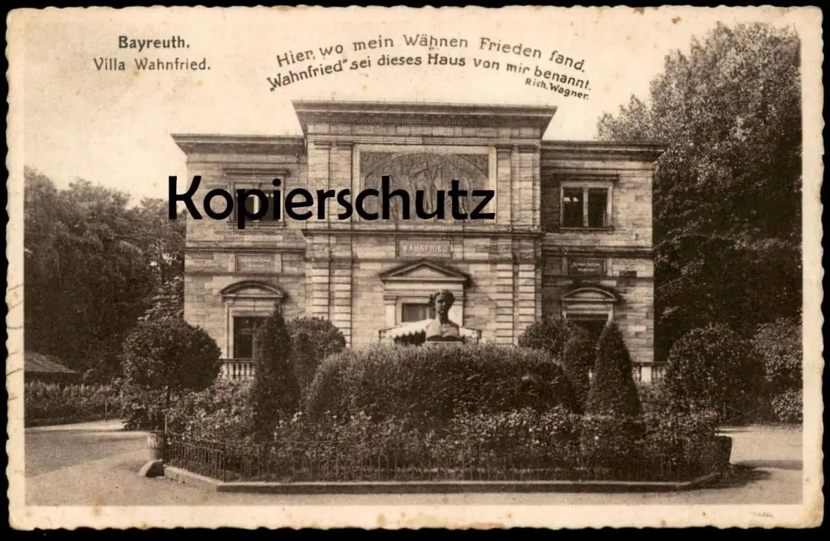 ALTE POSTKARTE BAYREUTH VILLA WAHNFRIED HIER WO MEIN WÄHNEN FRIEDEN FAND WAHNFRIED SEI DIESES HAUS VON MIR BENANNT RICHARD WAGNER