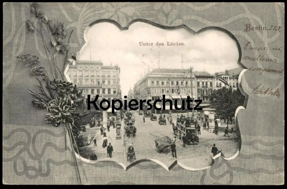 ALTE POSTKARTE BERLIN UNTER DEN LINDEN JUGENDSTIL KORNBLUME Ähren ear épi cornflower bleuet Ansichtskarte postcard cpa