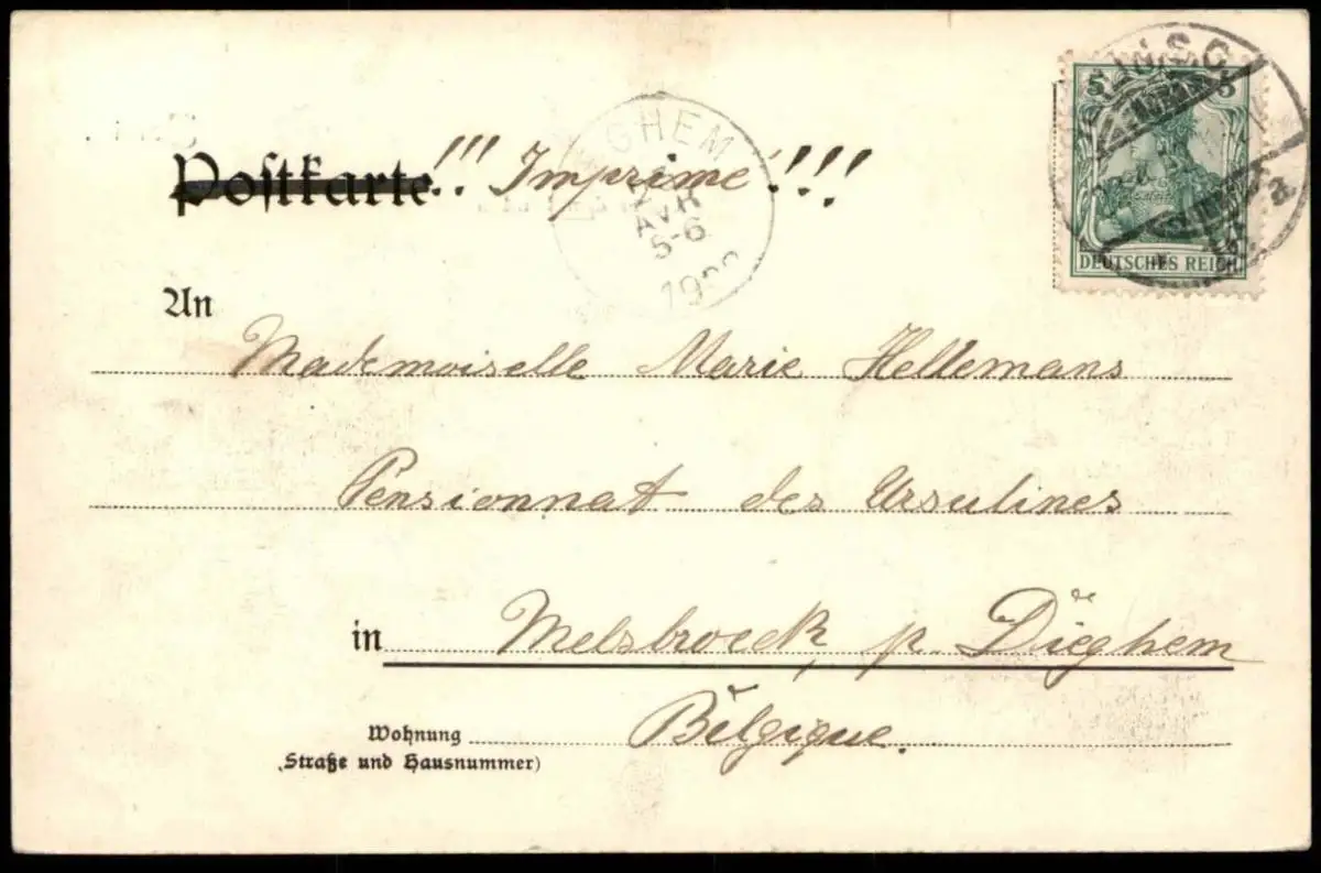Gelaufen: 22.04.1908 mit Stempel Berlin SO nach Melsbroeck bei Dieghem, Ankunftsstempel Dieghem 23.04.1908Erhaltung (s. Scan): gut - sehr gut / 916333