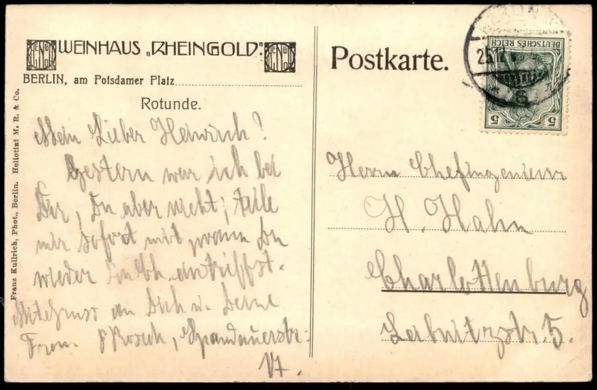 ALTE POSTKARTE BERLIN WEINHAUS RHEINGOLD AM POTSDAMER PLATZ ROTUNDE SEKTKÜHLER WEINKÜHLERVerlag: Franz Kullrich, Phot., Berlin; Heliotint M. R. & Co.