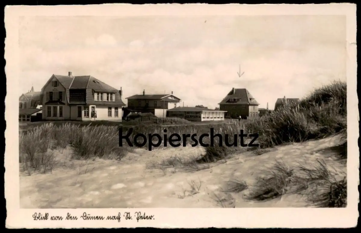 ALTE POSTKARTE BLICK VON DEN DÜNEN NACH ST. PETER-ORDING CONDITOREI HOTEL CAFÉ GERMANIA Duinen Duine Dunes Duene cpa AK