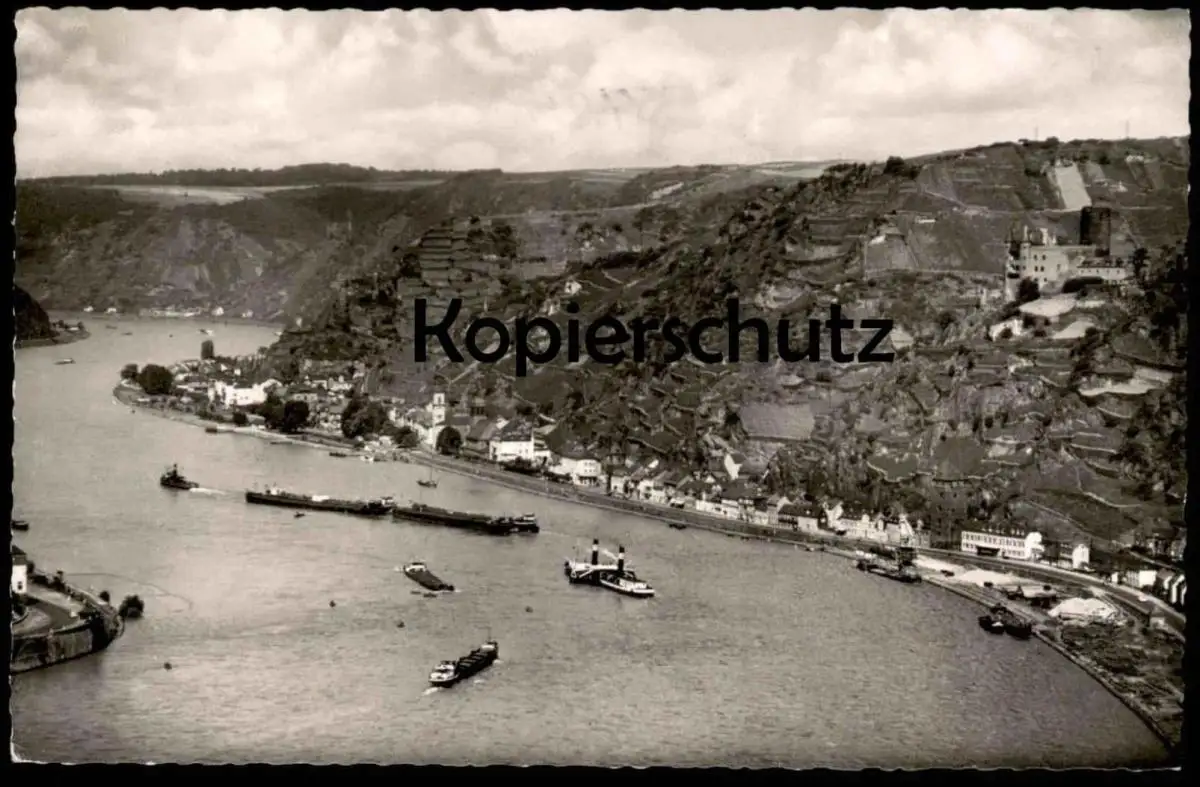 ALTE POSTKARTE BLICK VON DER LORELEY ST. GOARSHAUSEN SCHUBVERBAND DAMPFER FRACHTSCHIFF RHEIN cargo ship Goar postcard