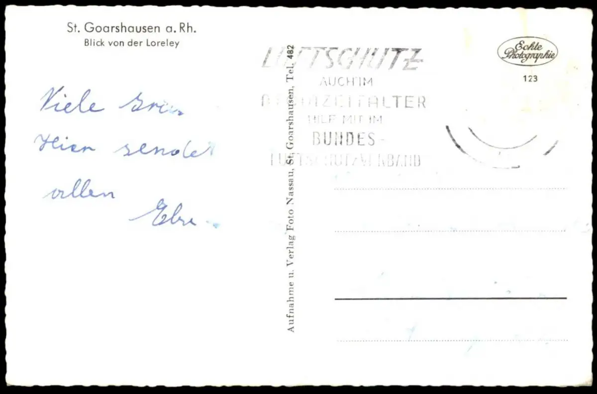 ALTE POSTKARTE BLICK VON DER LORELEY ST. GOARSHAUSEN MIT SCHUBVERBANDVerlag: Foto Nassau, St. Goarshausen