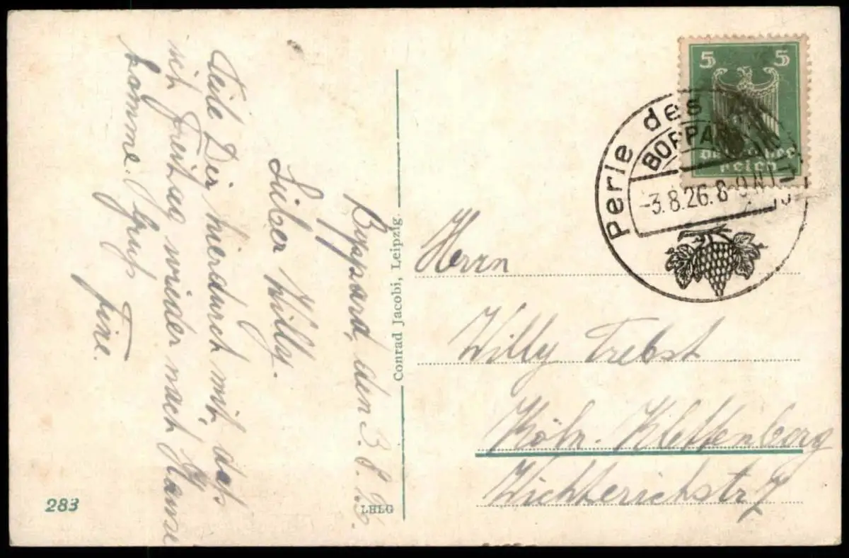 Gelaufen: 03.08.1926 mit Stempel Boppard nach Köln-Klettenberg