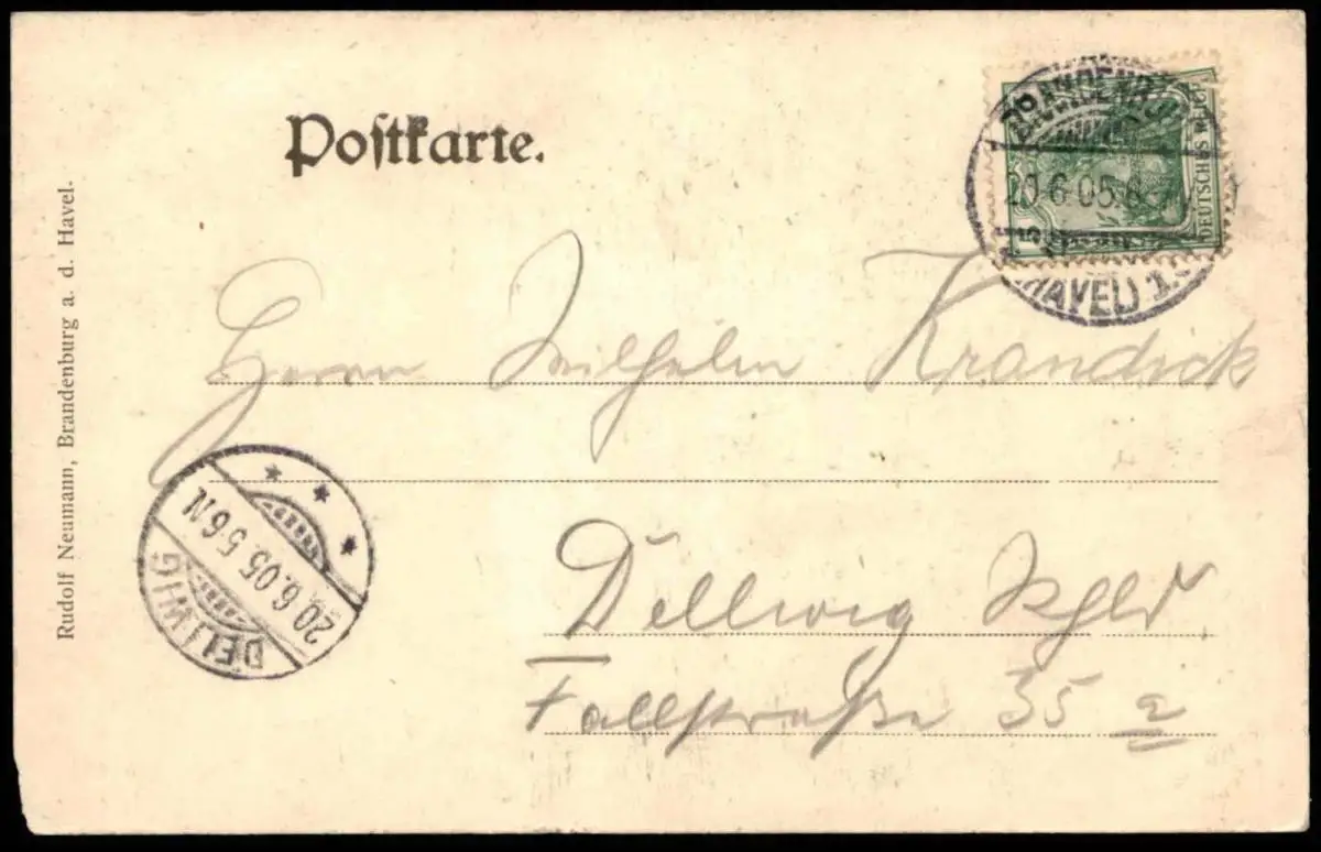 Gelaufen: 20.06.1905 mit Stempel Brandenburg nach Dellwig