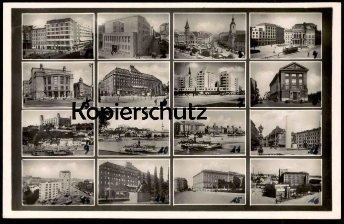 ALTE POSTKARTE BRATISLAVA MIKROSKOP KARTE BANK HLINKA-PLATZ STADTTHEATER SAVOY MANDERLA CAFÉ Ansichtskartecpa postcard