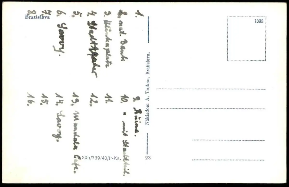 ALTE POSTKARTE BRATISLAVA MIKROSKOP KARTE BANK HLINKA-PLATZ STADTTHEATER SAVOY MANDERLA CAFÉVerlag: A. Trokan, BratislavaGelaufen: nein, rückseitig beschriftet mit SehenswürdigkeitenErhaltung (s. Scan): gut / 917479