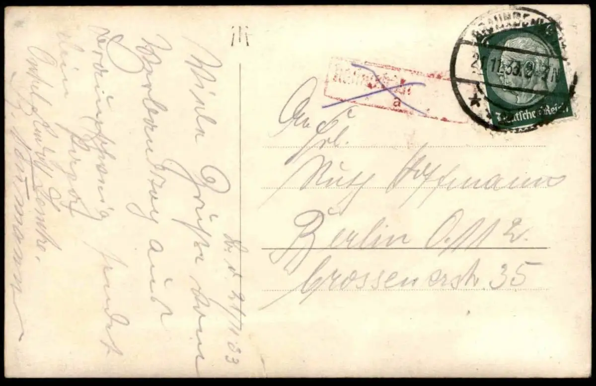 Gelaufen: 21.11.1933 mit Stempel Braunschweig nach Berlin