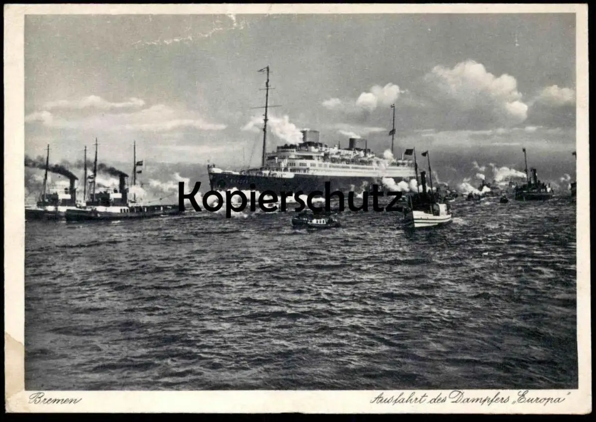 ALTE POSTKARTE BREMEN AUSFAHRT DES DAMPFERS EUROPA 10.11.1939 NACH RODEWISCH Damper steam ship steamer postcard cpa AK