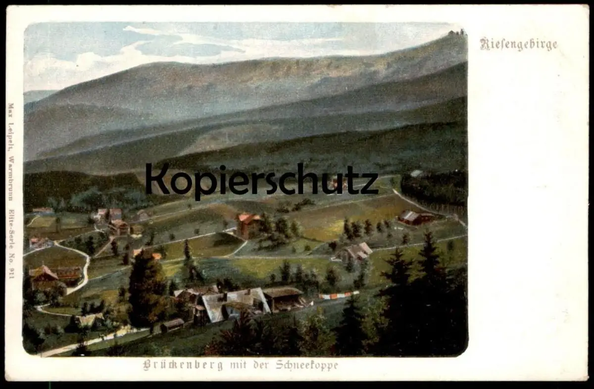 ALTE POSTKARTE BRÜCKENBERG MIT DER SCHNEEKOPPE KARPACZ GORNY SCHLESIEN RIESENGEBIRGE Karkonosze Krkonose Polska postcard