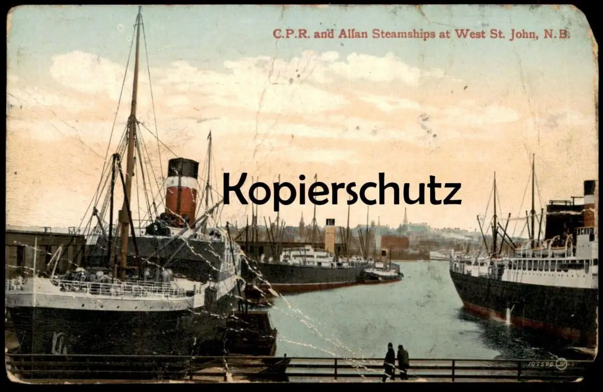 ALTE POSTKARTE C.P.R. AND ALLAN STEAMSHIPS AT WEST ST. JOHN N. B. DAMPFER steam ship New Brunswick Canada postcard AK