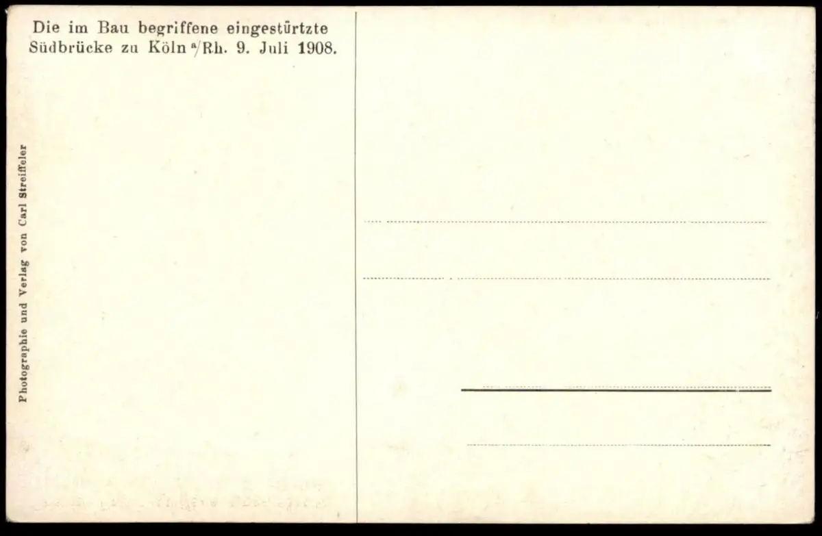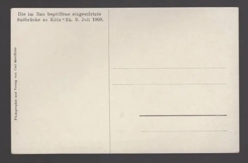 ALTE POSTKARTE DIE IM BAU BEGRIFFENE EINGESTÜRZTE SÜDBRÜCKE ZU KÖLN AM RHEIN 9. JULI 1908 Ansichtskarte postcard AK cpa