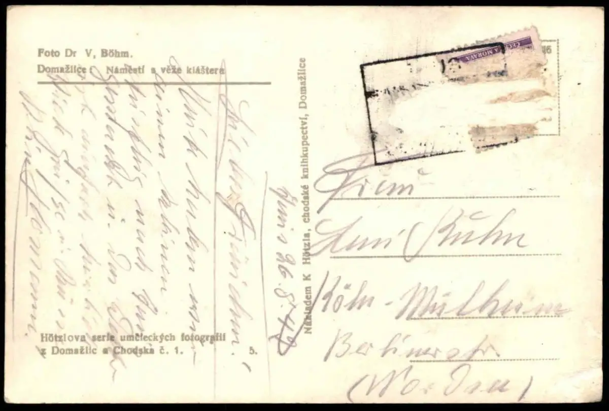 ALTE POSTKARTE DOMAZLICE NAMESTI S VEZE KLASTERA FOTO DR. V. BÖHM Czech Republic Ceska Cesko Ansichtskarte postcard cpa
