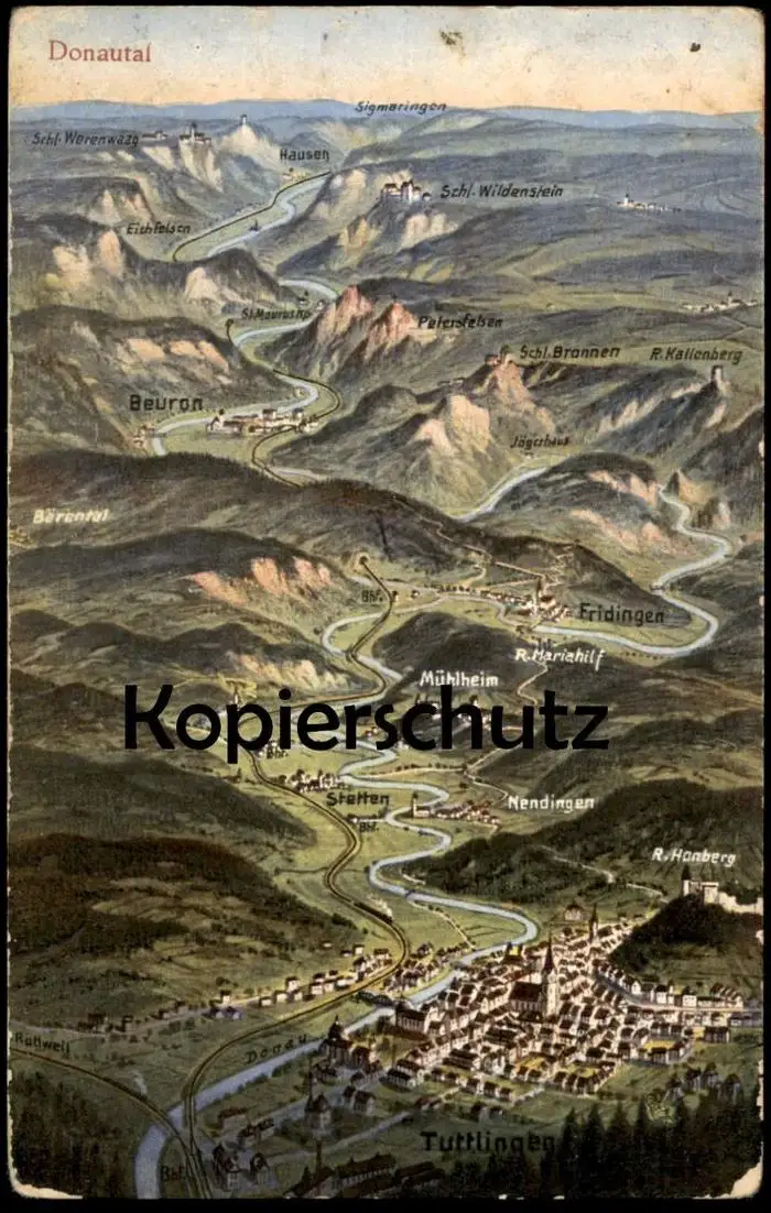 ALTE POSTKARTE DONAUTAL LANDKARTE SIGMARINGEN BEURON JÄGERHAUS FRIDINGEN HAUSEN STETTEN NENDINGEN TUTTLINGEN BÄRENTAL MARIAHILF HOMBERG WILDENSTEIN KALTENBERG