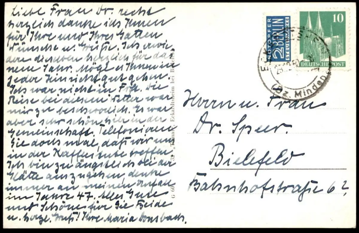 Gelaufen: 28.12.1950 mit Stempel Eckardtsheim nach BielefeldErhaltung (s. Scan): gut - sehr gut / 917376
