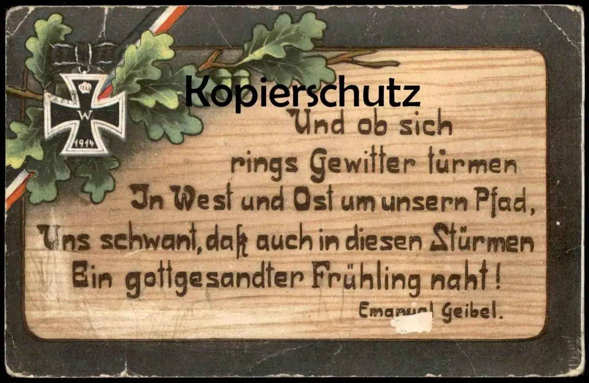 ALTE POSTKARTE EISERNES KREUZ SPRUCH EMANUEL GEIBEL 1. WELTKRIEG GOTT PATRIOTIKA Patriotik Ansichtskarte AK cpa postcard