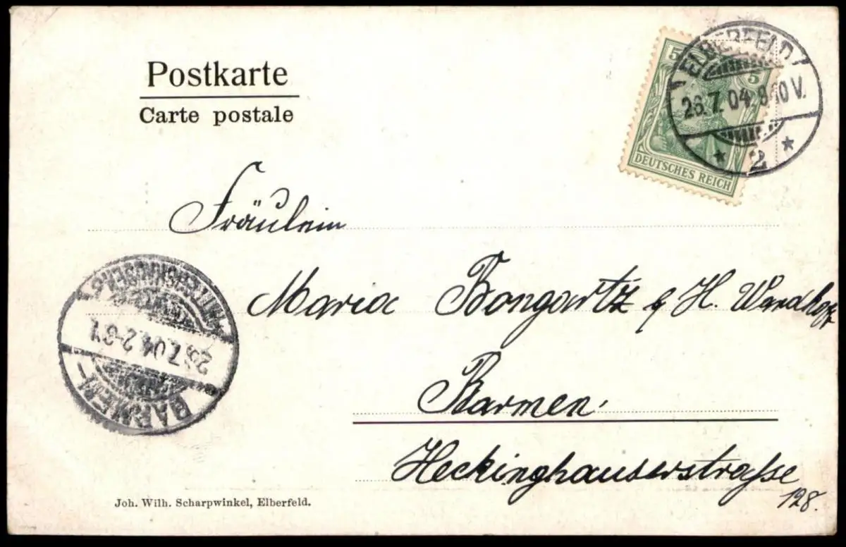 Gelaufen: 26.07.1904 mit Stempel Elberfeld nach BarmenErhaltung (s. Scan): gut / 916403