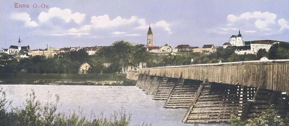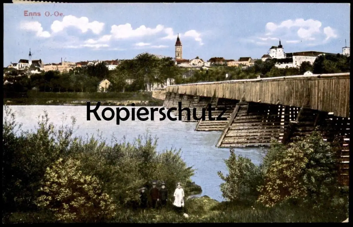 ALTE POSTKARTE ENNS HOLZBRÜCKE KINDER CHILDREN ENFANTS 1915 OBERÖSTERREICH Österreich Austria Ansichtskarte postcard