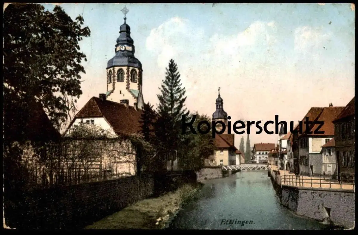 ALTE POSTKARTE ETTLINGEN PANORAMA MIT ALB cpa postcard AK Ansichtskarte