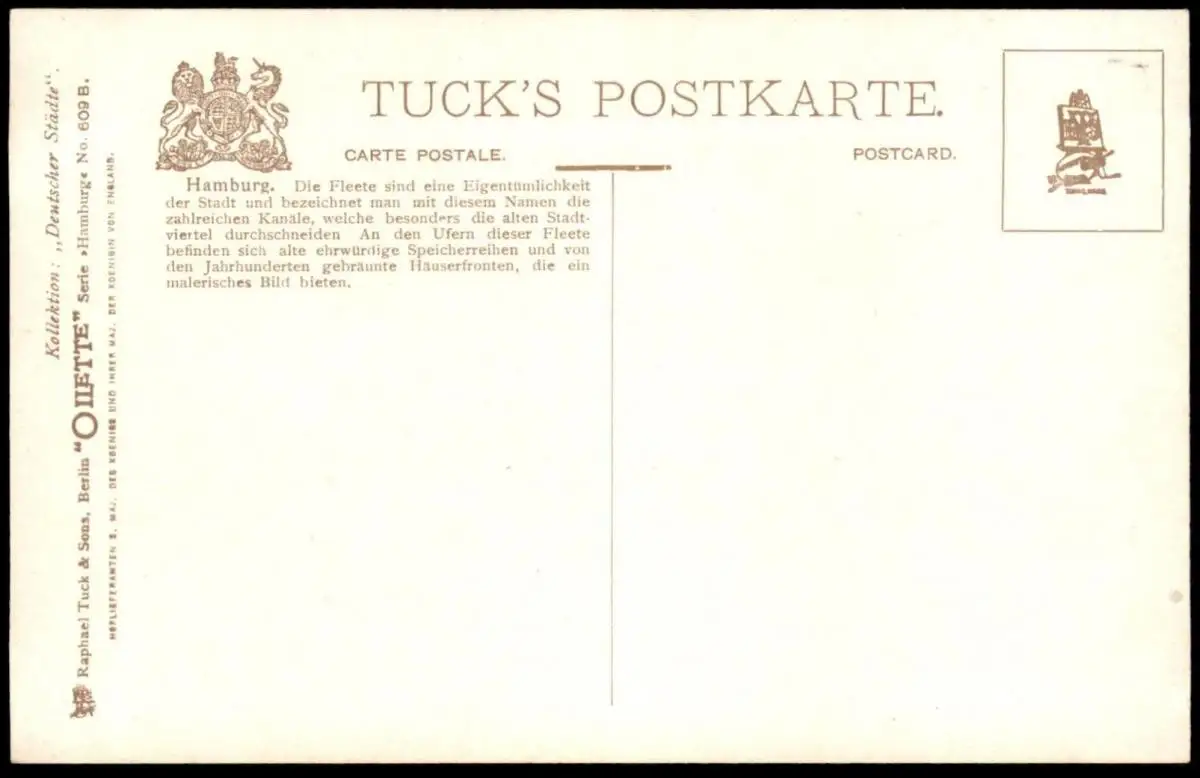 ALTE POSTKARTE OILETTE RAPHAEL TUCK DEUTSCHE STÄDTE SERIE HAMBURG NO. 609 F. V. KAMPTZVerlag: Raphael Tuck