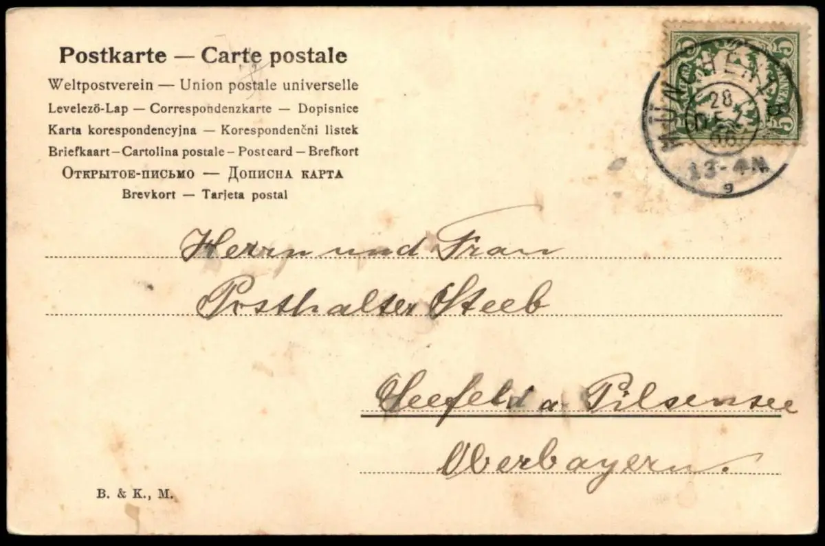 Gelaufen: 28.12.1903 mit Stempel München nach Seefeld am PilsenseeErhaltung (s. Scan): gut / 915550
