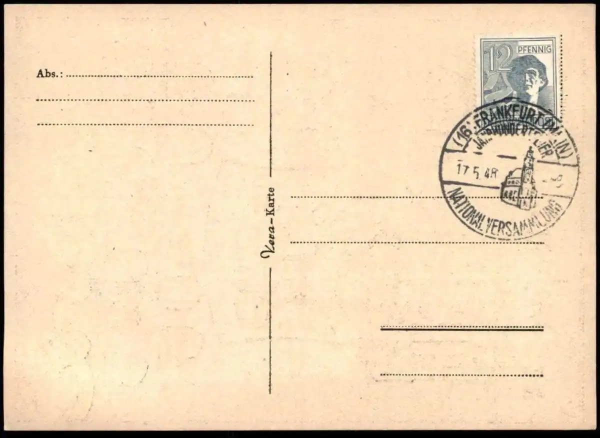 Gelaufen: nein, frankiert 17.05.1948 mit Sonderstempel Farnkfurt Nationalversammlung
