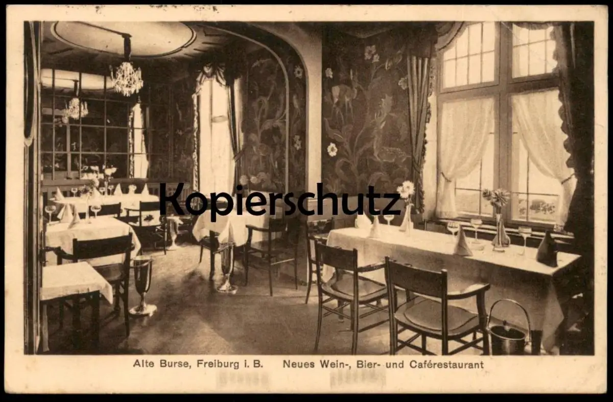 ALTE POSTKARTE FREIBURG IM BREISGAU ALTE BURSE NEUES WEIN-, BIER- UND CAFÉRESTAURANTVerlag: Atelier Carl Gehl, Freiburg
