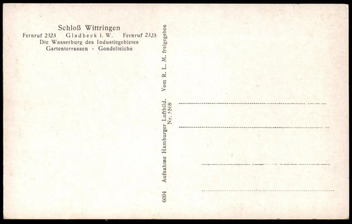 ALTE POSTKARTE GLADBECK IN WESTFALEN HAUS WITTRINGEN LUFTAUFNAHME FLIEGERAUFNAHME SCHLOSS WASSERBURG AK postcard cpa