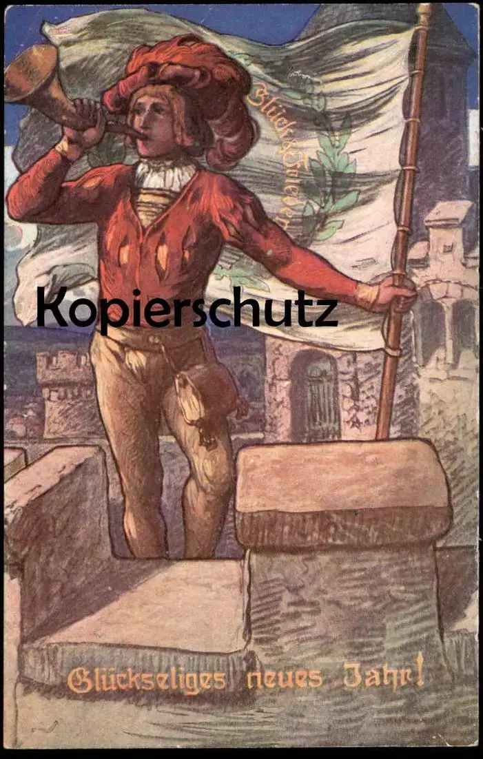 ALTE POSTKARTE GLÜCKLICHES NEUES JAHR! TURMBLÄSERVerlag: Etlingerscher Verlag Wilhelm Ott, Würzburg